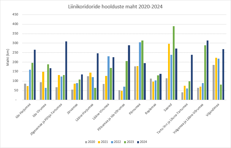 Liinikoridoride hooldus kokku maakonniti 2018-2024