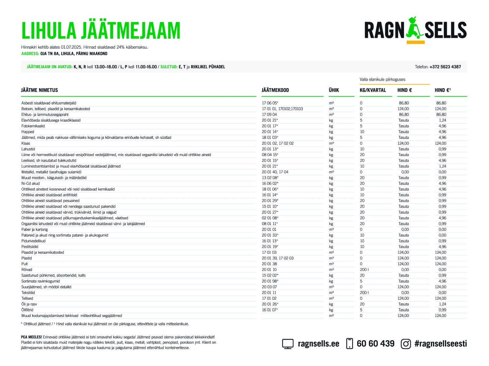 Jäätmejaama lahtiolekuajad: