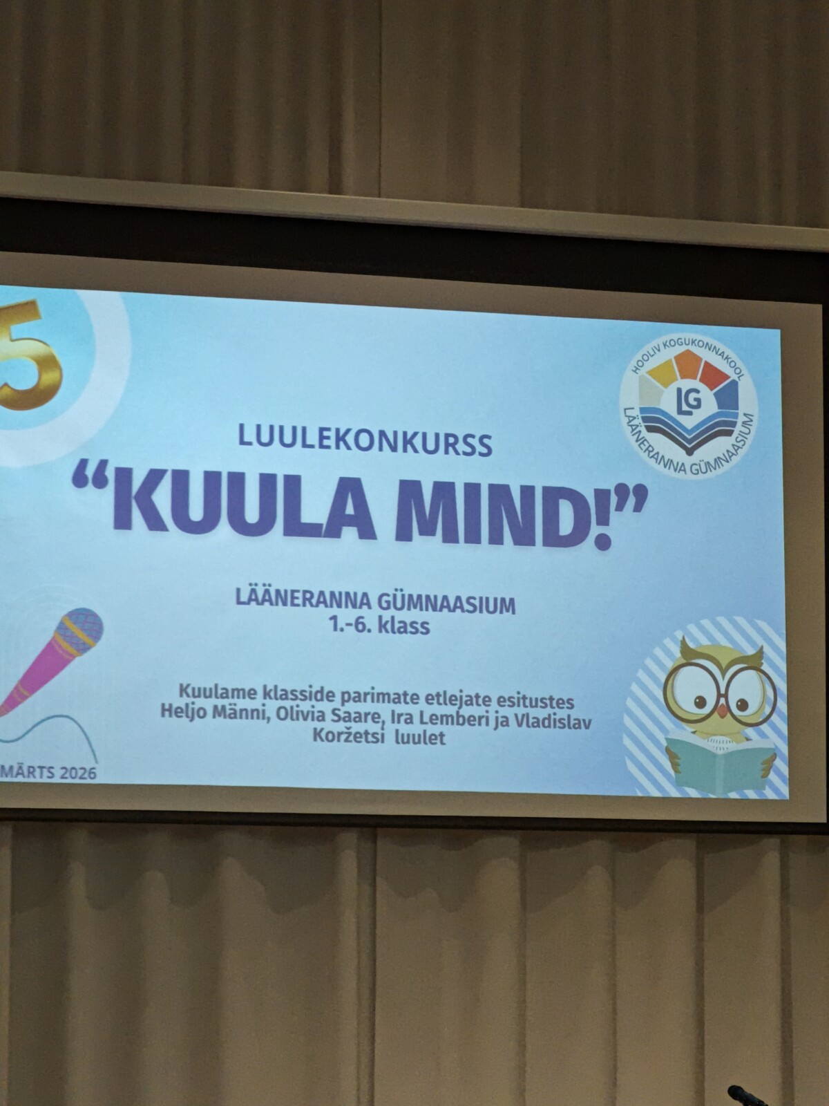 Emakeelenädala tippsündmuseks oli 12. märtsil Lihula koolimajas toimunud luulekonkurss „Kuula mind!“