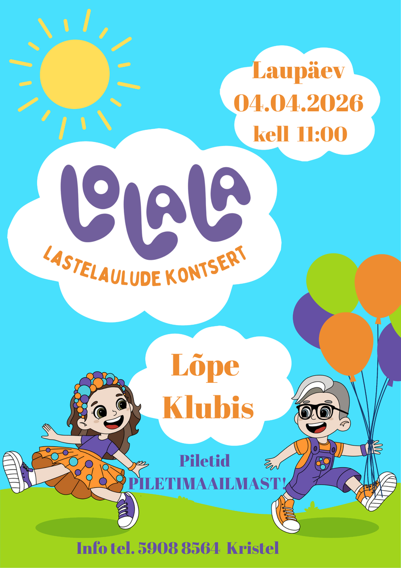 4. aprillil astub Lõpel rahva ette armastatud perebänd Lolala, kes on tuntust kogunud eelkõige oma populaarse lastelaulude YouTube’i kanali kaudu.