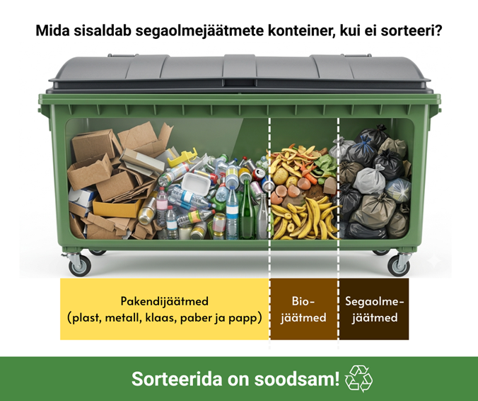 Keskmiselt tuleb segaolmejäätmete konteinerisse pandud biojäätmete ja pakendijäätmete eest tasuda 4 kuni viis korda kõrgemat tasu kui siis, kui need oleksid liigiti kogutud. Paraku on segaolmejäätmete hulgas sageli just väga palju pakendijäätmeid ja biojäätmeid.